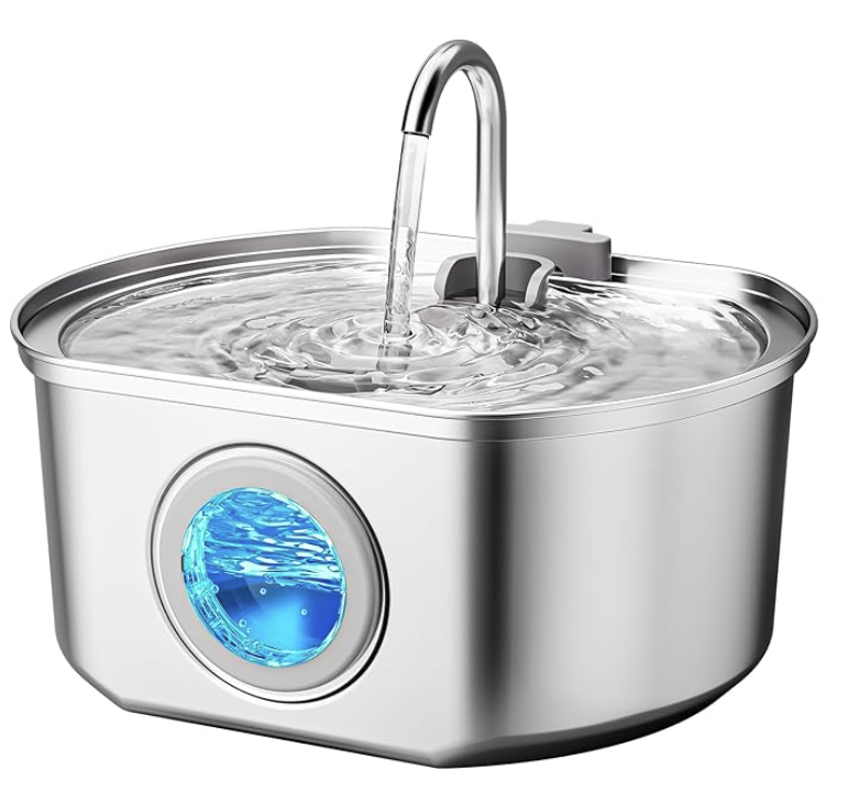 108 oz/3.2 L Capacity & Travel Convenience: With a generous capacity of 108 oz/3.2 L, stainless steel cat water fountain can keep your pets hydrated for up to 12 days, ensuring they always have access to fresh water, even in your absence. Spend more quality time with your furriends and worry less about refills! Travel with peace of mind knowing that your furry companion is well taken care of.