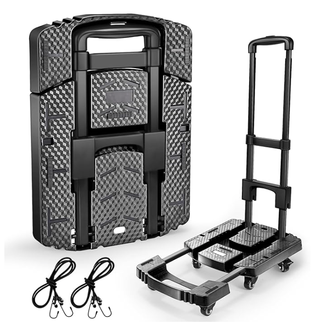 ⦁ **Adjustable Platform + 2 Elastic Ropes**: The dolly cart has an adjustable platform that can fit items of various sizes and comes with two elastic ropes for securing items during transport, adding flexibility and convenience.