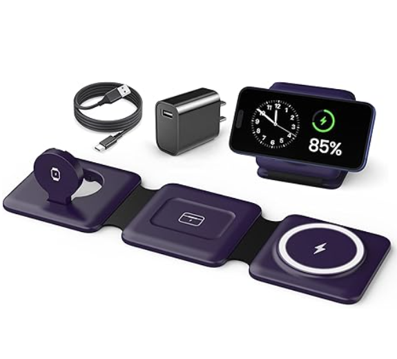 ⦁ 3 in one Fold Up Charger Station: The wireless charging pad contains a magnetic suction, which can automatically and accurately charge the Apple 12 and above series. The magnetic suction is suitable for iPhone 17-12 Pro Max. It is also compatible with Apple Watch Ultra 8 7 6 5 4 3 2 & AirPods with wireless charging.