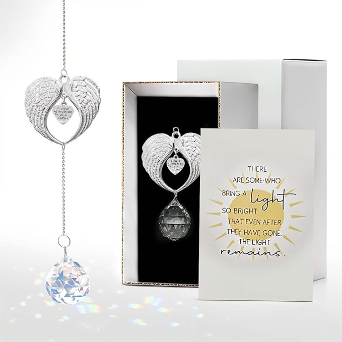 Sun Catcher Memorial Gifts A Piece of My Heart is in Heaven – Sympathy Gift for Loss of Loved One, Crystal Angel Wings Suncatcher for Windows, Bereavement