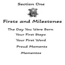- Thoughtfully organized sections for documenting milestones, special moments, and firsts.